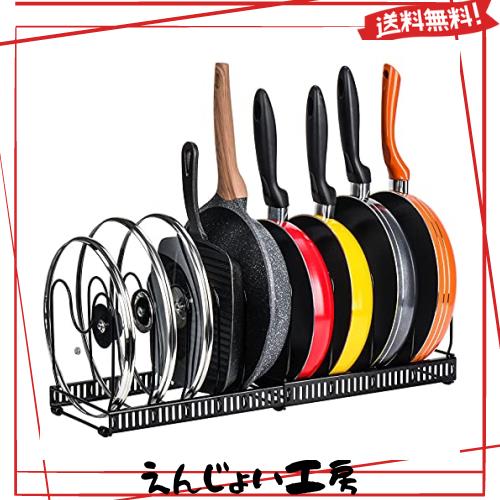 Toplife伸縮式 フライパンラック キッチン 鍋収納ラック 10本仕切りパーツ付き フライパン 鍋 鍋蓋置き(黒)