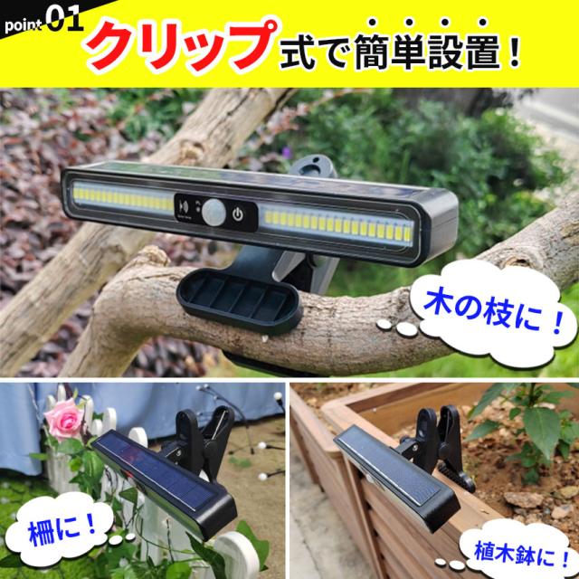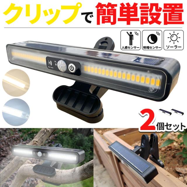 クリップ式ライト ソーラーライト 2個セット センサーライト ライト ソーラー センサー ソーラー充電 クリップ 防犯ライト 防水 ガーデンライト 人感 自動 LED LEDライト 屋外 屋内 庭 階段 明るい 照明 花壇 ベランダ ランプ 人感センサー 明暗センサー 暖光 白光 小さい