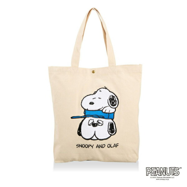 スヌーピー 刺繍 帆布トートバッグ ナチュラル (スヌーピー & オラフ)