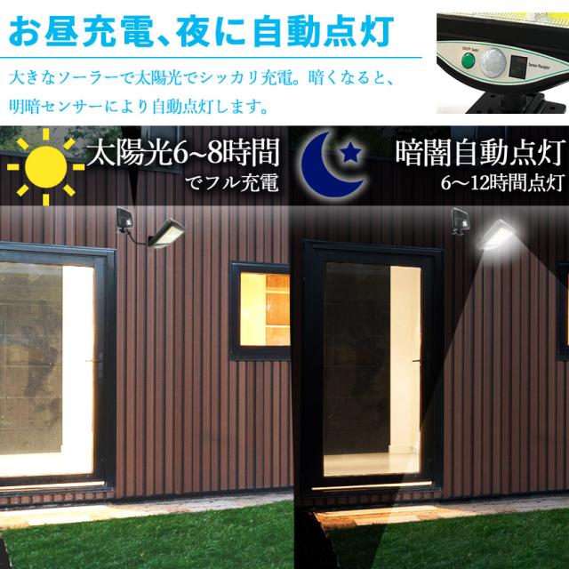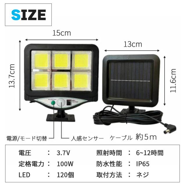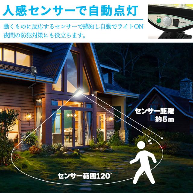 センサーライト ソーラーライト 120COB 2個セット 人感センサー リモコン付き COBチップ採用 3モード 120° 照明範囲 ソーラーライトモーションディテクター 5Mケーブル付き 防水 防犯ライト 自動点灯 屋外照明 庭 玄関 ガーデンライト 駐車場 停電緊急対策 防災ライト