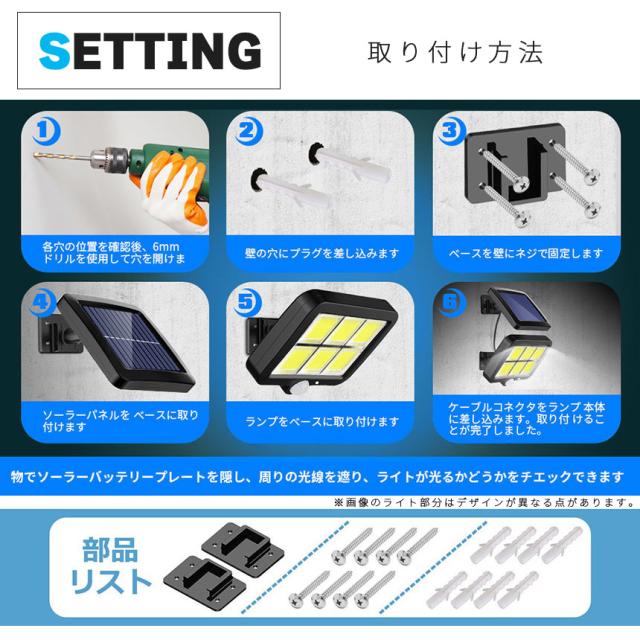 より明るいCOBのLEDソーラーライトにより、センサーと照明角度は120°で、より広い照明エリアを覆い、広い範囲で最大限の明るさを発揮。これにより、夜間でも通行人に明るく安全な環境を作り出したり、防犯対策にも効果を発揮します。