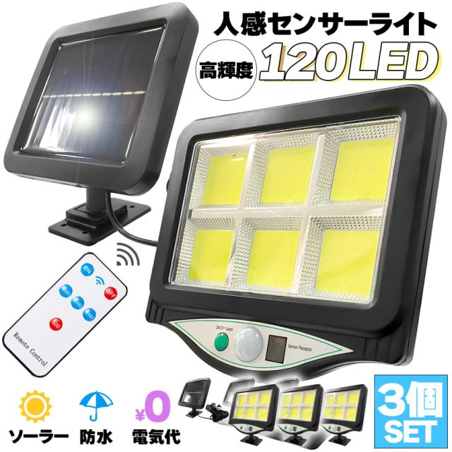 センサーライト ソーラーライト 120COB 3個セット 人感センサー リモコン付き COBチップ採用 3モード 120° 照明範囲 ソーラーライトモーションディテクター 5Mケーブル付き 防水 防犯ライト 自動点灯 屋外照明 庭 玄関 ガーデンライト 駐車場 停電緊急対策 防災ライト