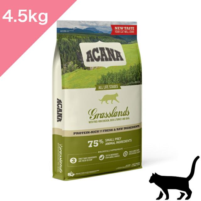 ◆クーポン有◆賞味期限2027/4/24 以降 【猫用】 ACANA アカナ グラスランドキャット 【4.5kg】 新鮮鴨肉 新鮮鶏肉 GrassLand Cat 正規品 プレミアムフード