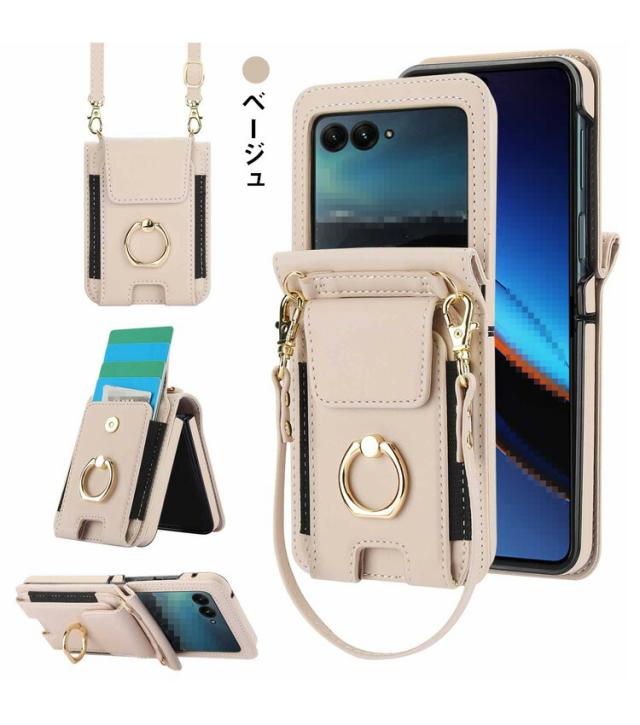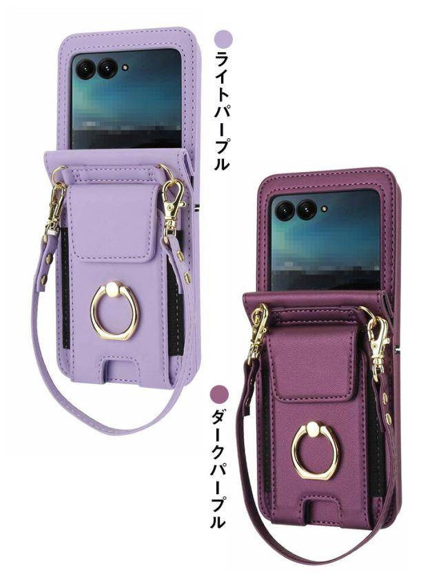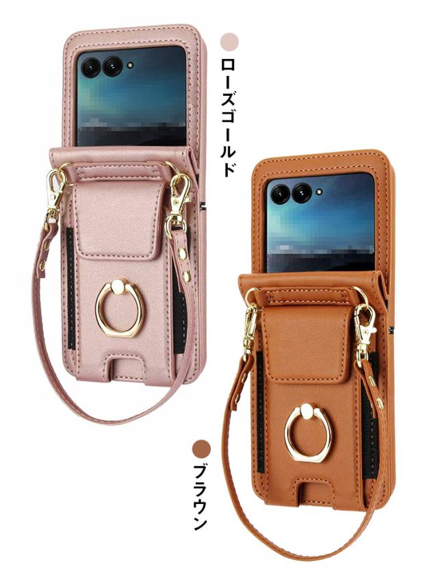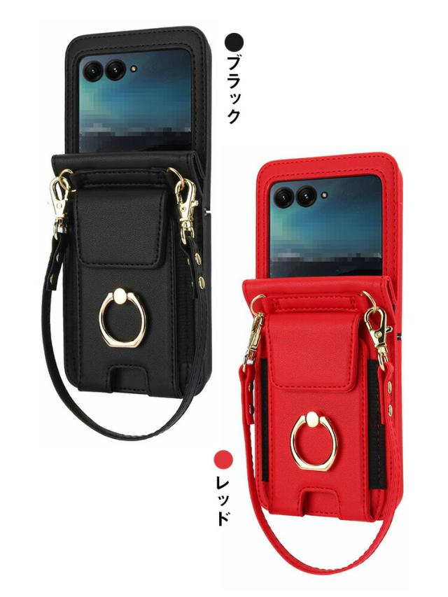 Moto Razr 50/50s/50d ケース Razr 50 Ultra カバー PUレザー 折りたたみ型 リング付き ハンドストラップ付き ストラップ 落下防止 ショルダー 肩掛けベルト付き カード収納付き スタンド機能 シンプル Motorola モトローラ レーザー50 / 50 ウルトラ 保護ケース