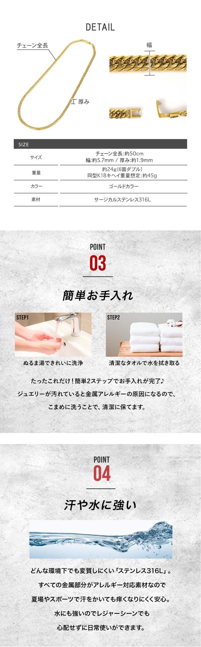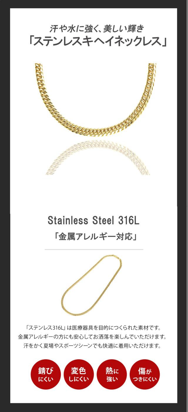 同型の" K18 " " 6面ダブル "キヘイチェーンサイズだと想定" 45g "となりますが、ステンレスキヘイは24gと軽量に着用できます。ステンレス素材のキヘイはお手入れ簡単で普段使いに最適な素材となっております。