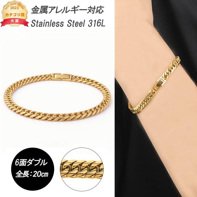 喜平 ブレスレット ステンレス メンズ 6面 6面ダブル 20cm キヘイブレスレット ダブル キヘイ サージカルステンレス 316L 18金 シンプル K18 カラー ジュエリー アクセサリー 男女兼用 金属アレルギー メンズブレスレット プレゼント 男性 誕生日 ギフト ホワイトデー