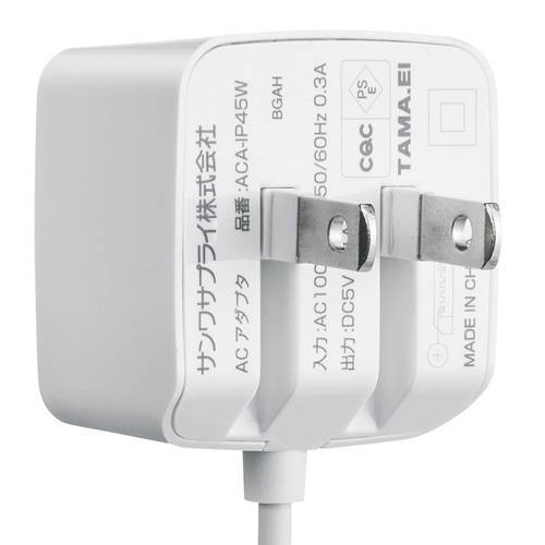 ■カラー:ホワイト■定格入力:AC100V〜240V 50/60Hz■定格出力:DC5V/2.1A■コネクタ形状:microUSB Bコネクタ(ケーブル一体型)■ケーブル長:1.5m■サイズ:W35×D30×H44mm■重量:70g(ケーブル含む)