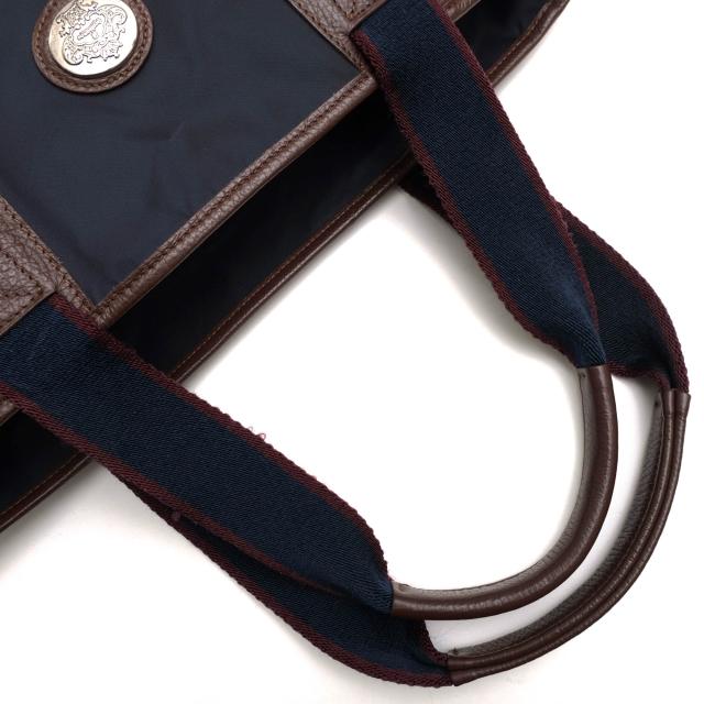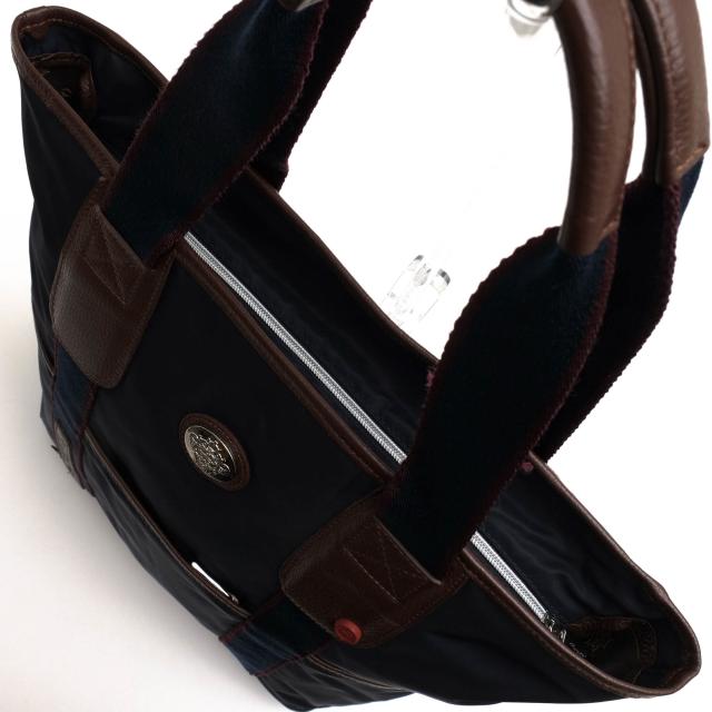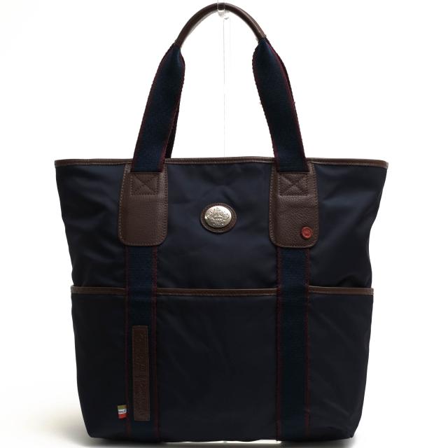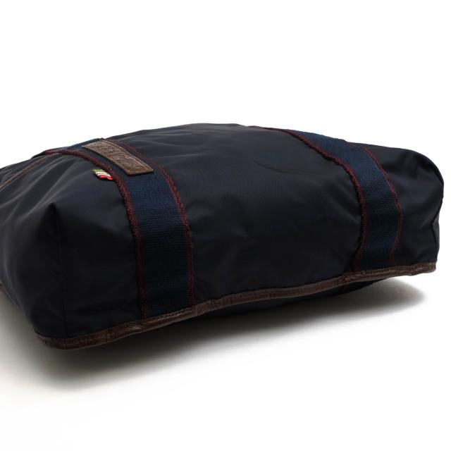 ラグジュアリーブランドも使用するリモンタ社ナイロンに、オロビアンコを代表する王冠ロゴマークがデザインされたモデル。フロントには携帯電話や鍵などの小物をすぐに取り出すのに便利なポケットを備えており、内部には1つのファスナーポケットと2つの仕分けポケットがあり、整理整頓に優れた機能性を発揮します。ハンドルの付け根やパイピングには牛革を使用することで、摩擦に対しての堅牢性を高めています。肩掛けもできるシンプルなデザインなので、通勤などのビジネスカジュアルスタイルにオススメです。