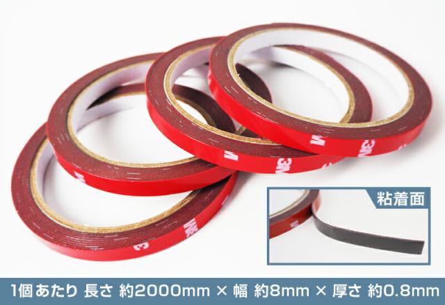 3M スリーエム 超強力 両面テープ 4個セット 長さ2000mm 厚み0.8mm パーツ取付の補強に最適!【メール便発送】
