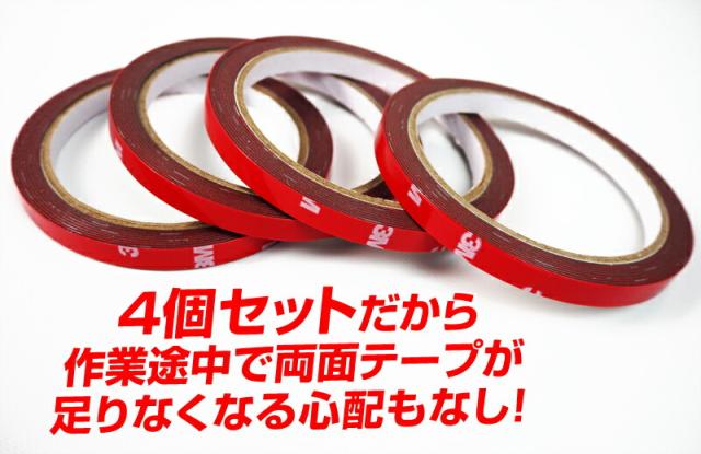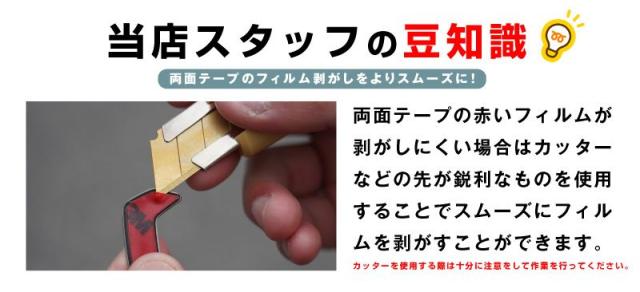 通常パーツに取り付け済の両面テープに、追加で補強することで粘着性が高まります。