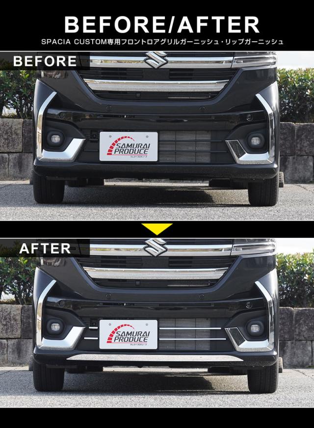 【セット割】新型スペーシアカスタム MK54S MK94S フロントロアグリル & フロントリップ ガーニッシュ 鏡面仕上げ