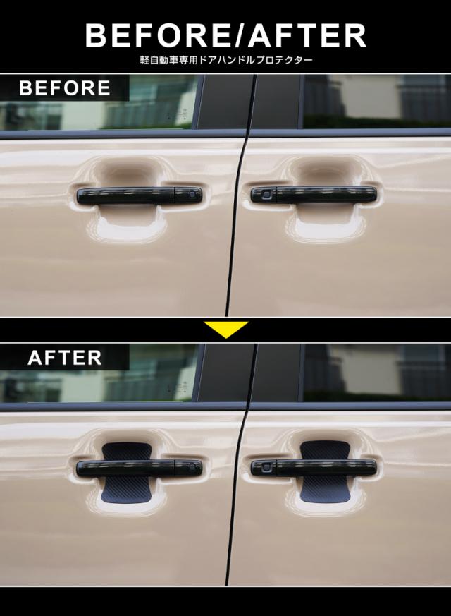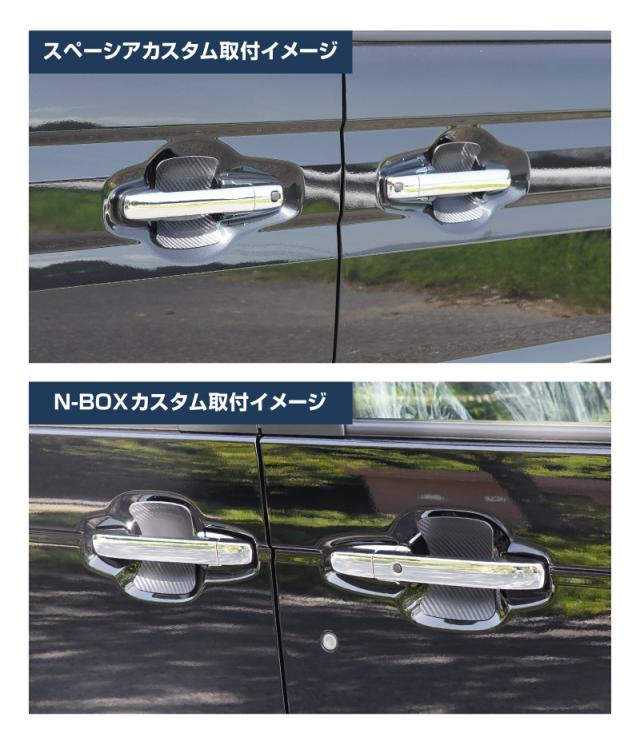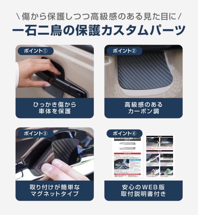 スズキ車 マツダ車 ホンダ車 ダイハツ車 スバル車 共通 マグネット装着タイプ ドアハンドルプロテクター 4P カーボン柄 選べる2色 スペーシア ハスラー フレアワゴン N-BOX タント ムーヴ シフォン ステラ【メール便発送】