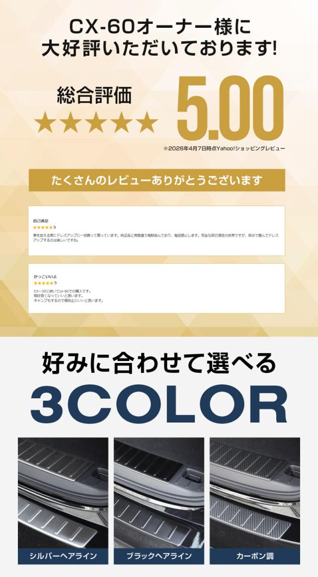 【予約/ブラック:5月10日頃入荷予定】【セット割】マツダ CX-60 ラゲッジ スカッフプレート&リアバンパーステップガード 保護パーツセット 選べる3色 シルバー ブラック カーボン調 2026年3月一部改良後対応