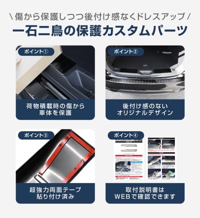 荷物の積み下ろし時に傷が付きやすい部分をしっかりとガード!愛車をきれいなまま保ちたい方にはオススメのパーツです。
