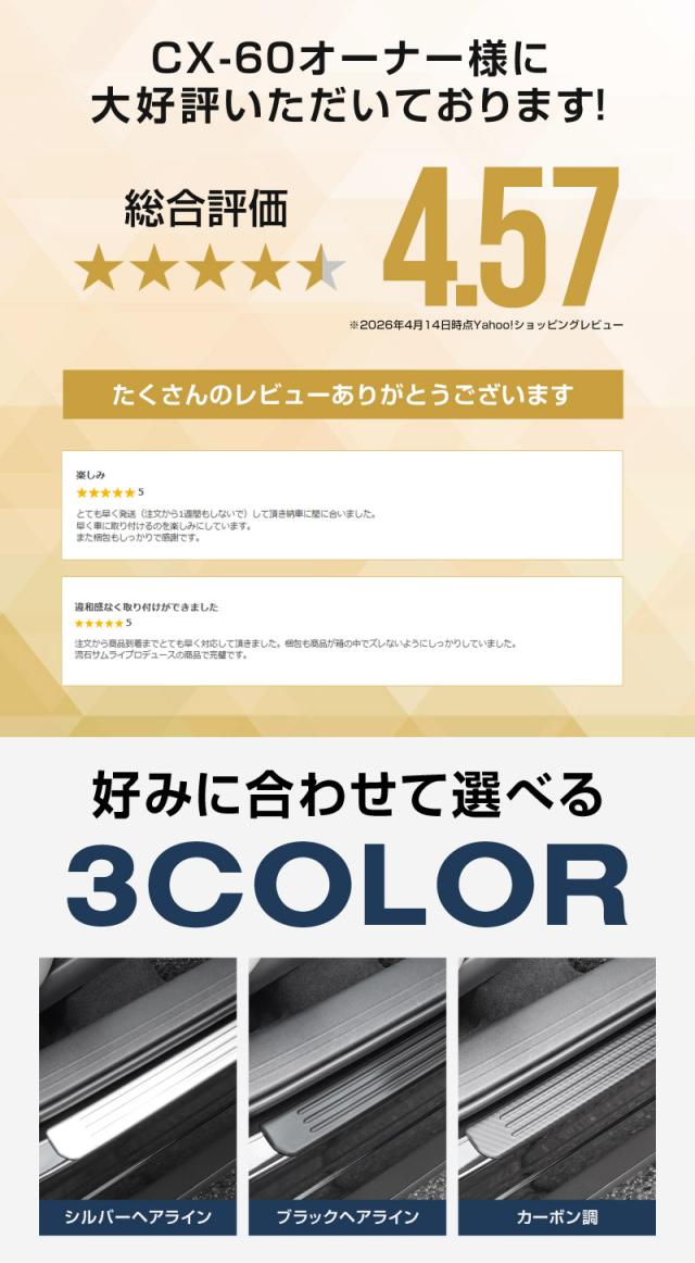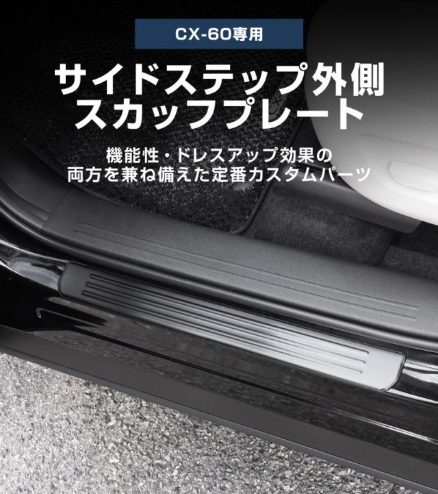 【予約/カーボン調:6月10日頃入荷予定】マツダ CX-60 スカッフプレート サイドステップ外側 フロント・リアセット 4P 車体保護ゴム付き 2026年3月一部改良後対応 選べる3色 シルバー ブラック カーボン調 内装 カスタム パーツ インテリアパネル
