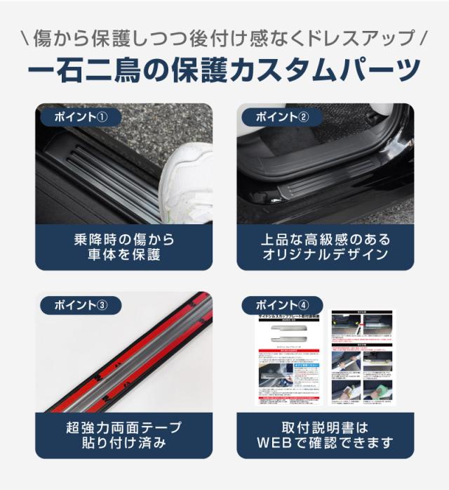 乗り降りの際に踏み傷が付きやすい部分をしっかりガード!