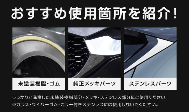 また、当店のメッキパーツや純正メッキモールに塗り込むことでメッキの細かな気泡を埋めることにより