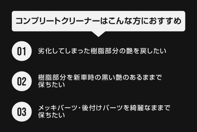 未塗装樹脂に塗り込むことで、劣化した部分の光沢を復活させます。