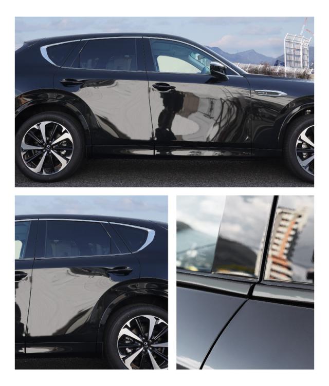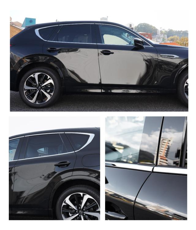 マツダCX60専用のウィンドウ下部のウェザーストリップモール(水切りモール)に装着するドレスアップパーツです。