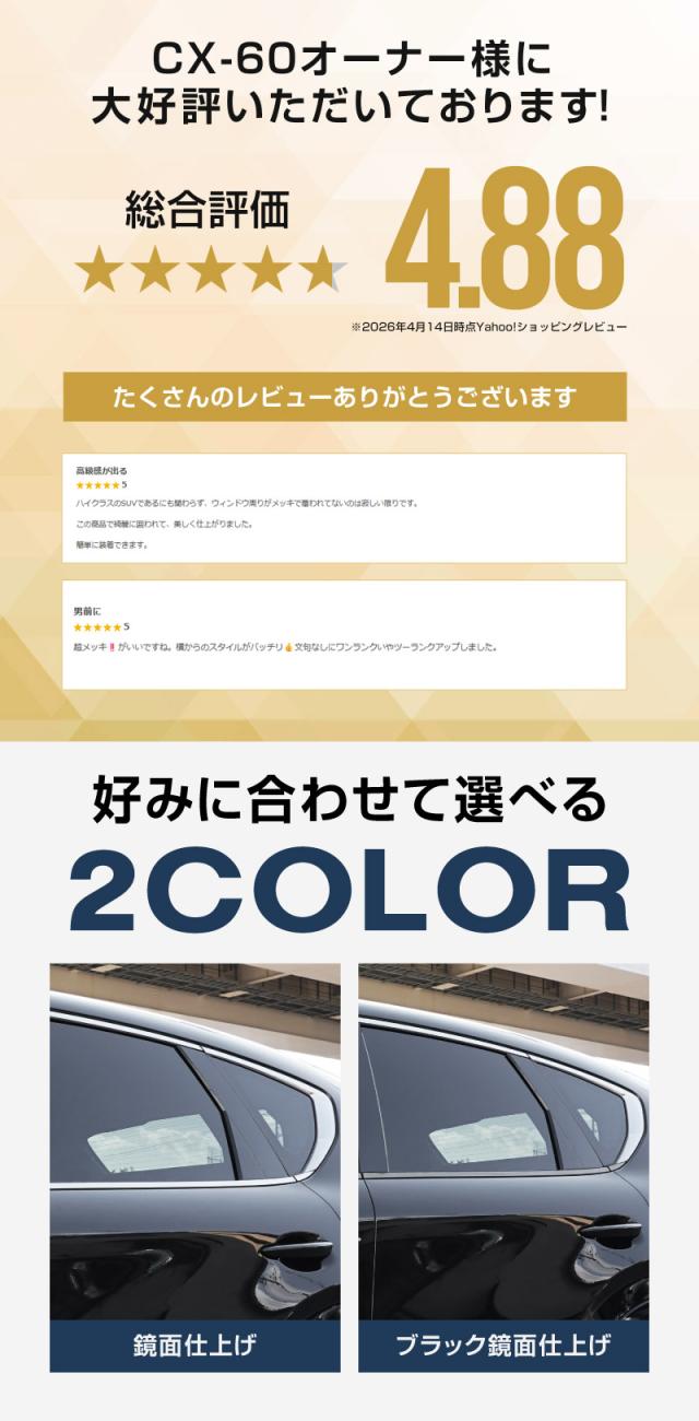 【予約/ブラック鏡面仕上げ:5月20日頃入荷予定】マツダ CX-60 ウィンドウトリム ガーニッシュ 左右セット 6P 選べる2色 鏡面仕上げ ブラック鏡面仕上げ 2026年3月一部改良後対応 外装 カーパーツ カー用品 社外品 カスタム パーツ ドレスアップ
