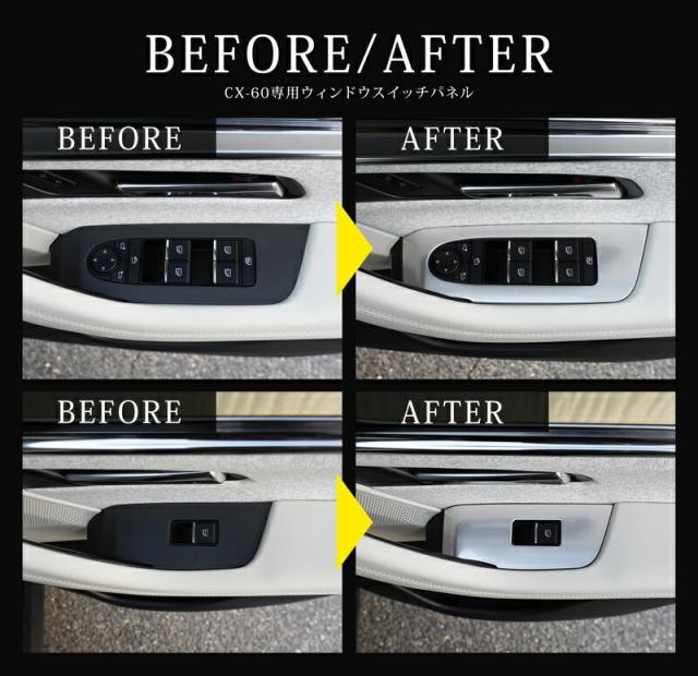 マツダ CX-60 ウィンドウスイッチ周り インテリアパネル 左右セット 4P 選べる2色 サテンシルバー ブラック 2026年3月一部改良後対応