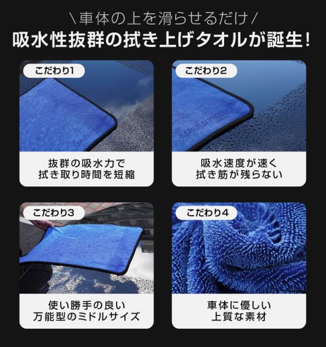 超吸水 サムライタオル Mサイズ 45cm×75cm 洗車 タオル 拭き上げ専用 マイクロファイバータオル 洗車キズが付きにくい柔らか手触りで安心 滑らせるだけで楽々拭き上げ 洗車の必需品 洗車タオル 大判【メール便発送】