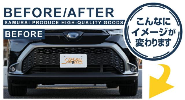 トヨタの新型カローラクロス専用(日本仕様)のフロントマスク下部のグリルに装着するカスタムパーツです。