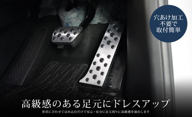 ペダルに被せるだけの簡単取付で、運転席の足元を気軽にカスタマイズできるおすすめアイテムです。