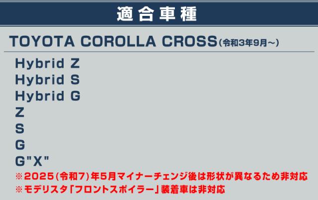 ・トヨタ カローラクロス 3BA-ZSG10 6AA-ZVG15 6AA-ZVG11 4BA-MXGA10 6AA-ZVG13 6AA-ZVG16【2021(令和3)年9月〜2025(令和7)年4月】