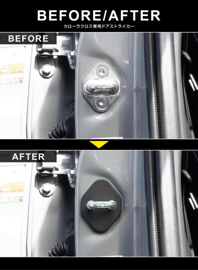 カローラクロス ドアストライカーカバー 4P ブラック 内装 カスタム パーツ アクセサリー 保護 キズ防止 汚れ防止 オプション カー用品 社外品 装飾品 ドレスアップ トヨタ【メール便発送】