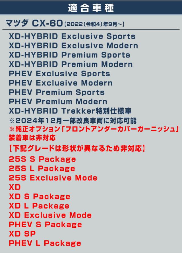 CX-60 ハイブリッド PHEV 専用 フロントアンダーリップ ガーニッシュ 1P 選べる2色 鏡面 ブラック鏡面