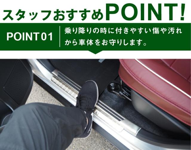 乗降時に傷が付きやすい部分をしっかりガードして大切な愛車を守ります。