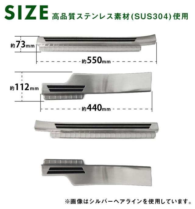 【予約/ブラック:6月20日頃入荷予定】タフト スカッフプレートカバー ガーニッシュ 滑り止めゴム付き フロント・リアセット 4P 選べる2色 シルバーヘアライン ブラックヘアライン