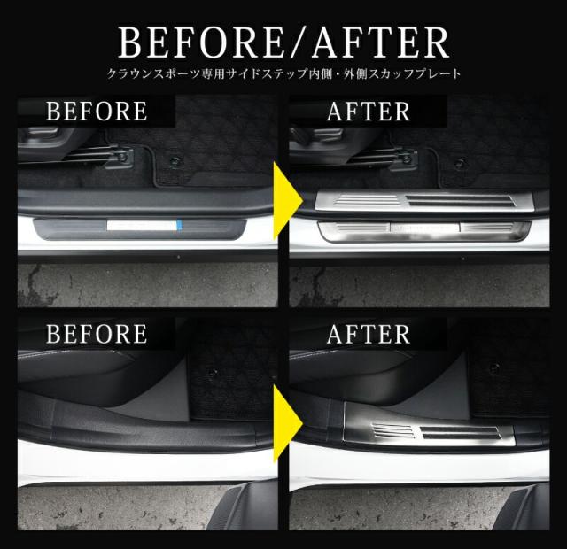 【予約/カーボン調:5月20日頃入荷予定】【セット割】クラウンスポーツ サイドステップ内側&外側 スカッフプレート 6P 選べる3色 シルバー ブラック カーボン調 カスタム パーツ アクセサリー トヨタ 新型 CROWN SPORT 専用