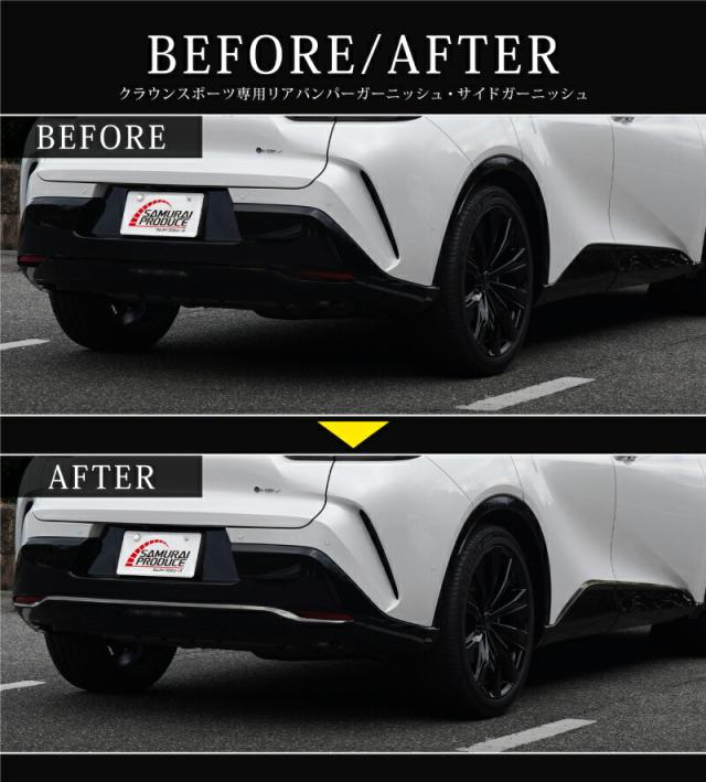 【セット割】クラウンスポーツ リアバンパー & サイドドア ガーニッシュ 外装パーツセット ブラック鏡面仕上げ カスタム パーツ アクセサリー トヨタ 新型 CROWN SPORT AZSH36W AZSH37W 専用
