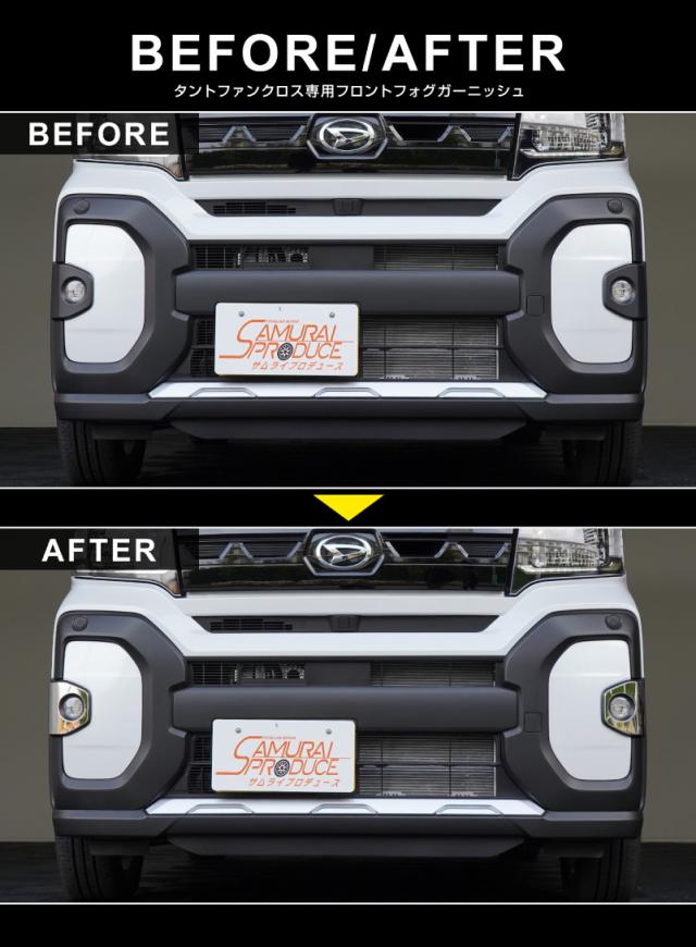 新型タント ファンクロス専用のフロントフォグ周りに装着するドレスアップパーツです。