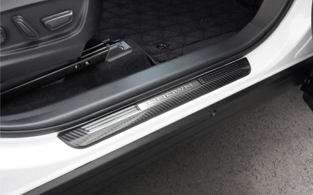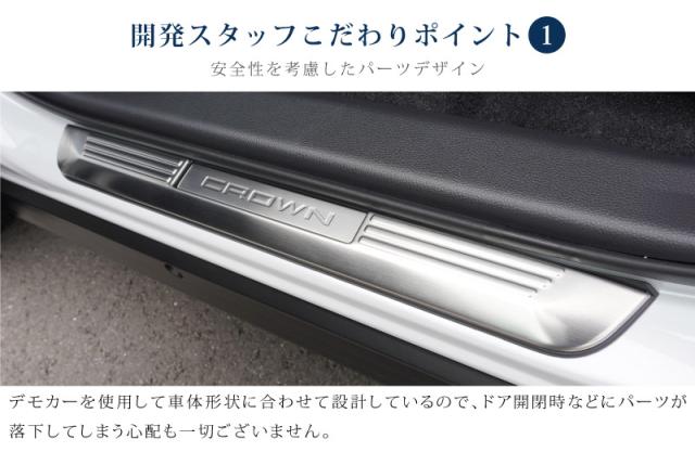 新型クラウンスポーツ専用のサイドドア乗降口(フロント)の外側樹脂部分に装着する保護パーツです。