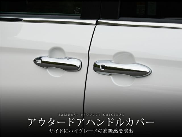ボディカラー同色で目立たないドアハンドルをメッキの輝きでカスタマイズが可能です。