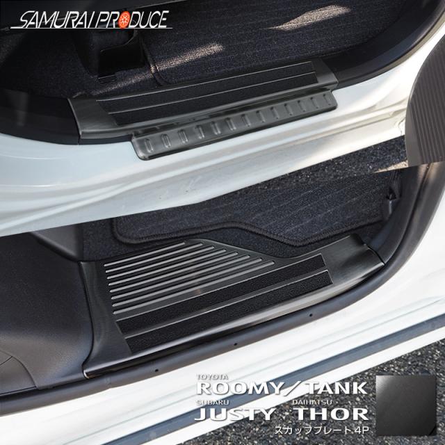 ルーミー トール サイドステップ スカッフプレート 滑り止め付き フロント・リアセット 4P ブラックヘアライン