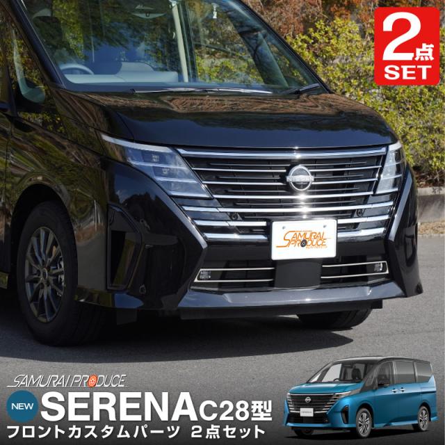 【セット割】新型セレナ C28 フロントグリル & フロントフォグ ガーニッシュ 外装パーツセット 鏡面仕上げ