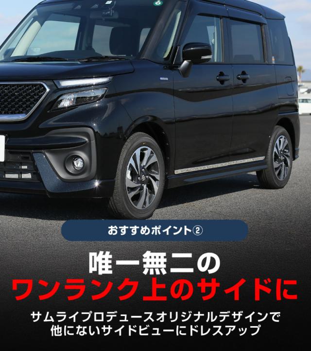 スズキ新型ソリオ・ソリオバンディット専用設計のサイドドア下部に装着するカスタムパーツになります。