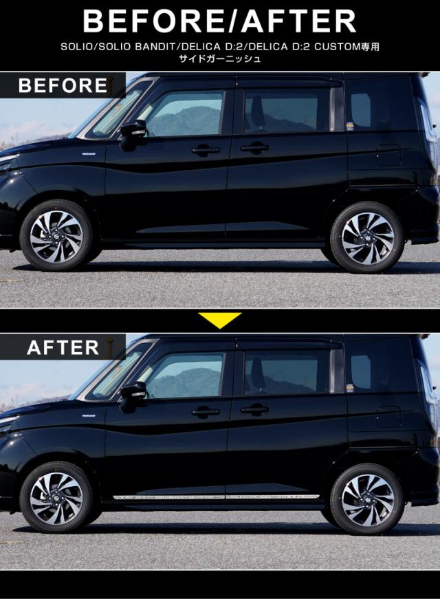 【予約/2月28日頃入荷予定】新型ソリオ ソリオバンディット MA47S MA37S MA27S MAD7S デリカD:2 サイドドア ガーニッシュ 左右セット 4P 鏡面仕上げ