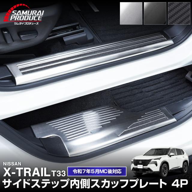 【予約/ブラック:2月20日頃入荷予定】新型エクストレイル T33 サイドステップ内側 スカッフプレート フロント・リアセット 4P 滑り止めゴム付き 2025年マイナーチェンジ後対応 選べる3色 シルバー ブラック カーボン調