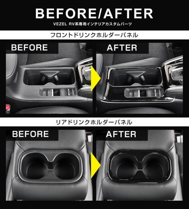 【セット割】新型ヴェゼル RV系 後期専用 フロント&リア ドリンクホルダー インテリアパネル セット 2P ピアノブラック 2025年10月一部改良後対応 内装 カスタム パーツ