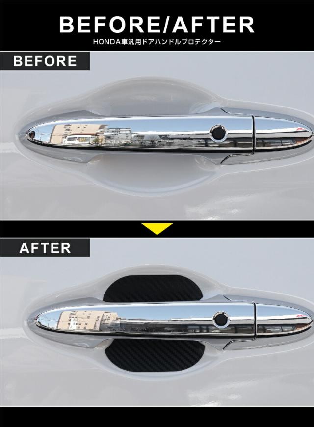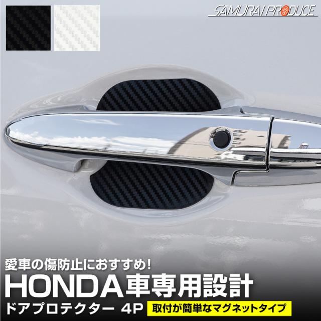 ホンダ車 汎用設計 マグネット装着タイプ ドアハンドルプロテクター セット 4P カーボン柄 選べる2色 ブラック ホワイト ヴェゼル ZR-V WR-V 新型 フリード GT系【メール便発送】