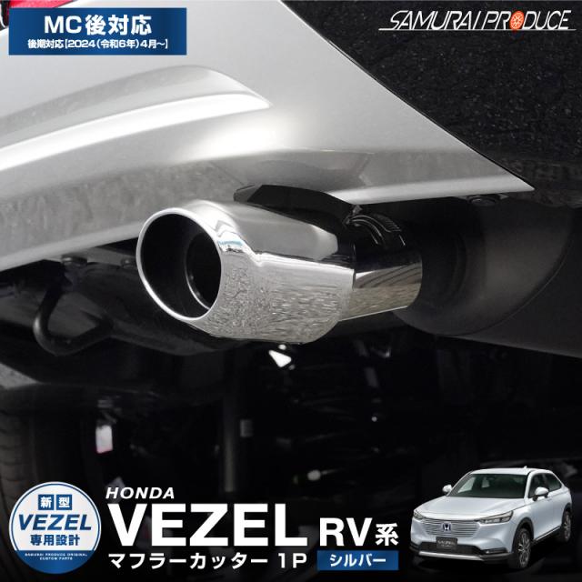 【予約/1月20日頃入荷予定】新型ヴェゼル RV系 オーバル マフラーカッター スラッシュカット 1P シルバー 落下防止ワイヤー付き