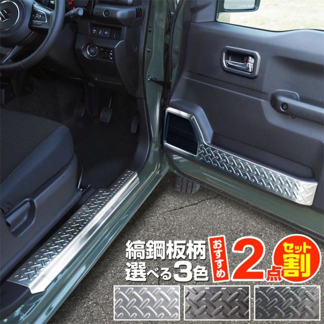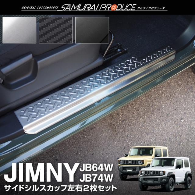 【予約/ブラック:12月20日頃入荷予定】ジムニー JB64 ジムニーシエラ JB74 サイドシル スカッフプレート 縞鋼板柄 左右セット 2P 選べる3色 シルバー ブラック カーボン調