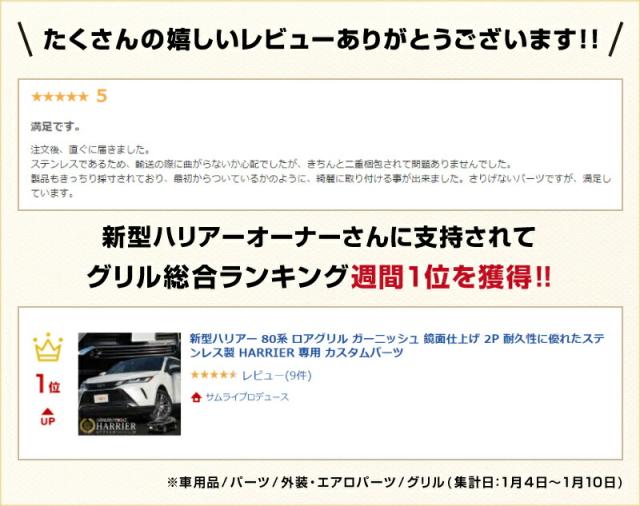 【予約/2月10日頃入荷予定】ハリアー 80系 ロアグリル ガーニッシュ 2P 鏡面仕上げ