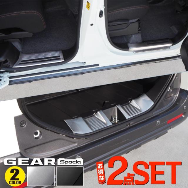 【セット割】スペーシアギア MK53S サイドシル & ラゲッジ スカッフプレート 保護パーツセット 選べる2色 シルバー ブラック