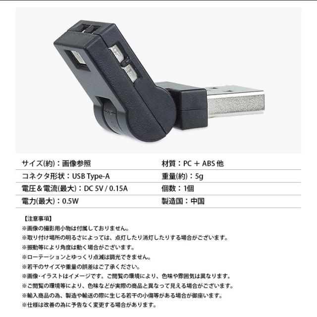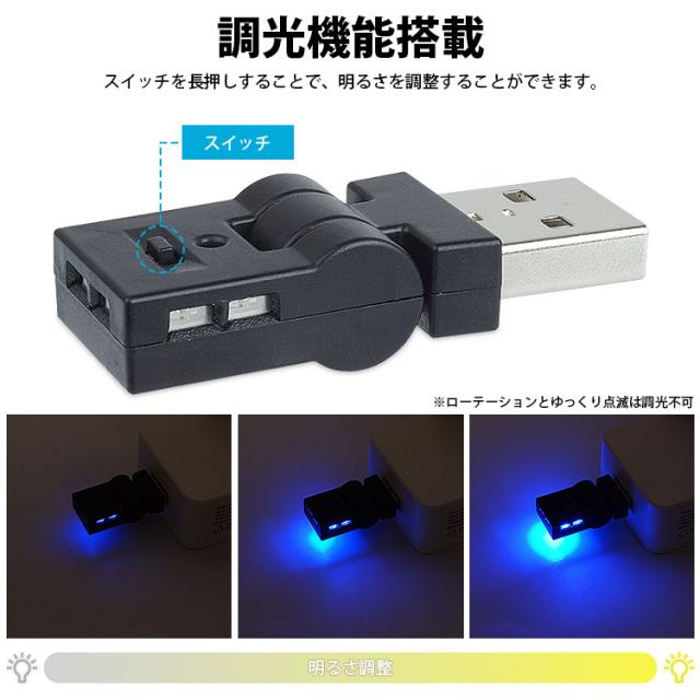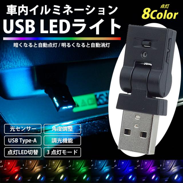 USB LED ライト 発光カラー 8色 イルミネーション 角度調整 点灯LED切替 光センサー メモリー機能付き 自動点灯 消灯 車内 明るさ調整 調光機能 USB Type-A USB給電 車用品